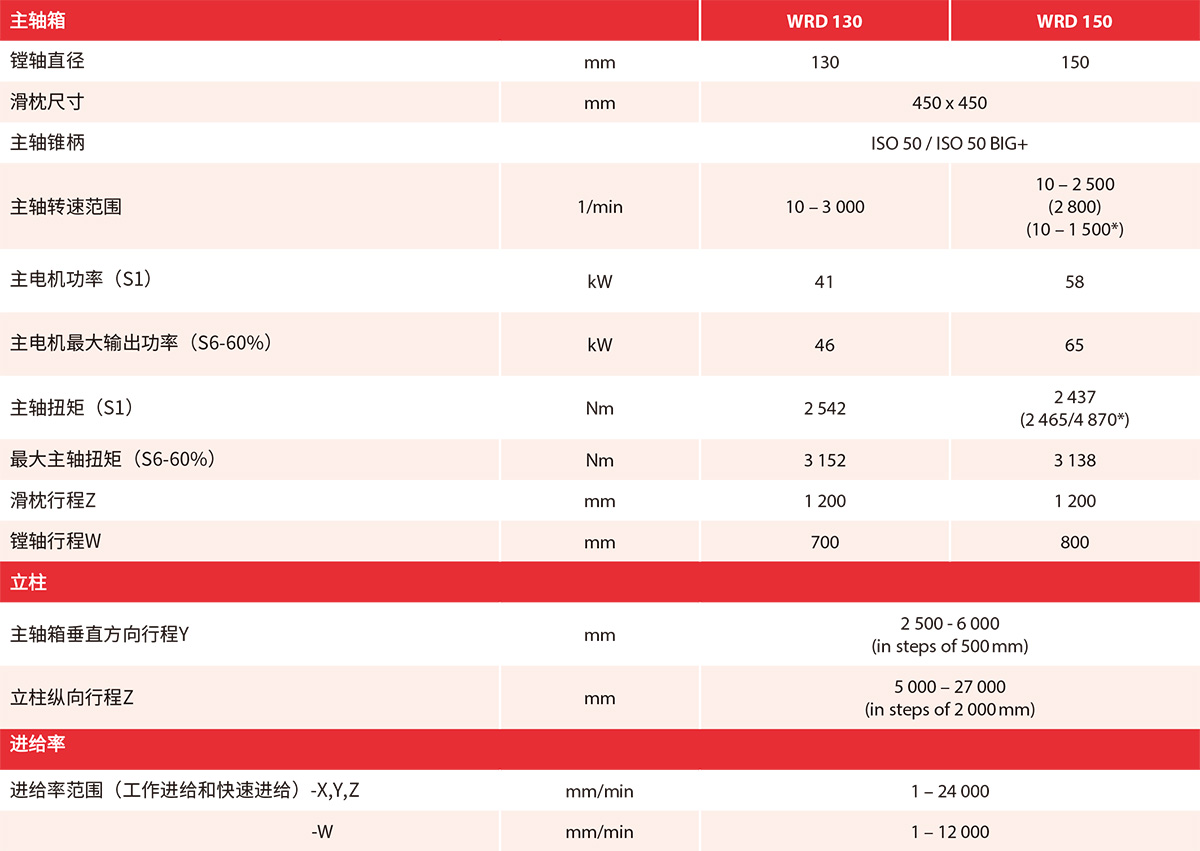 *這個選項適用于銑軸驅(qū)動平旋盤,Nmax = 1 500rpm,鏜軸扭矩是2465Nm,銑軸扭矩是≤4870Nm。