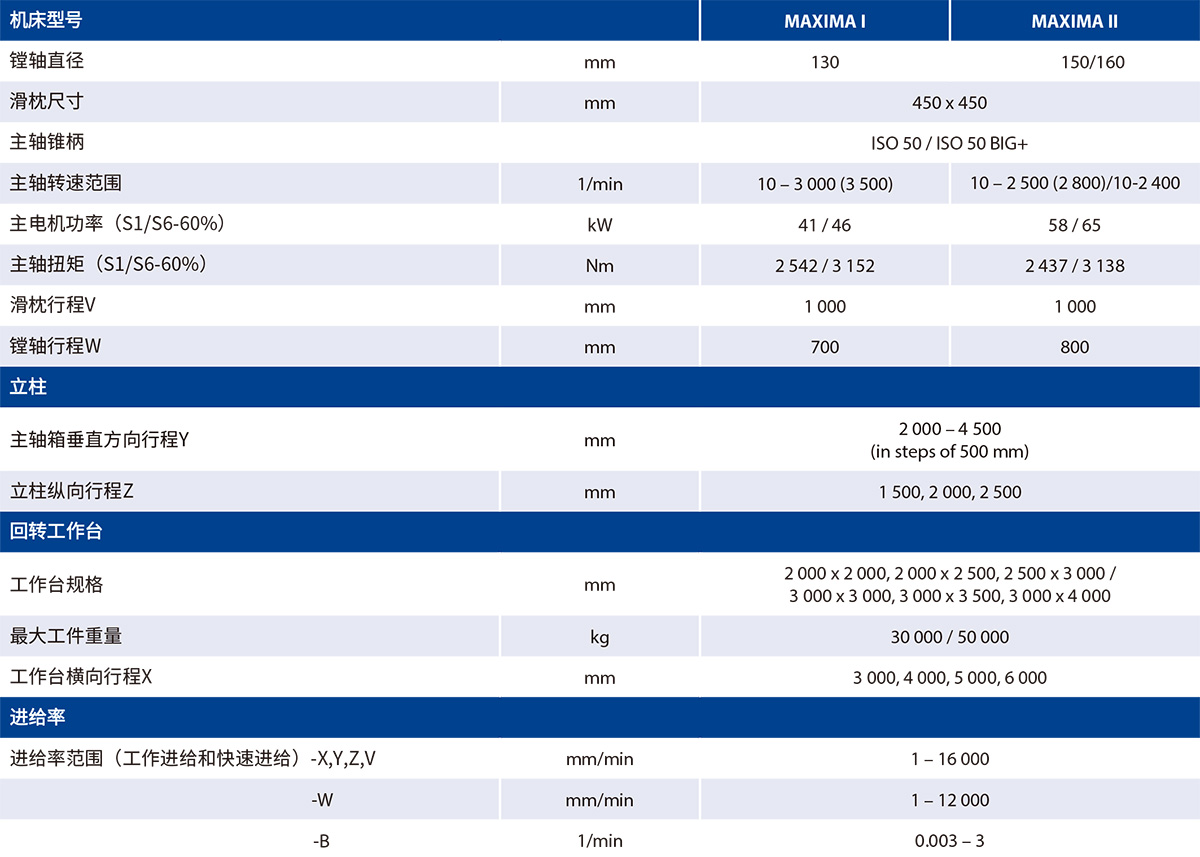 • MAXIMA II 機床配置直徑150/160mm的鏜軸